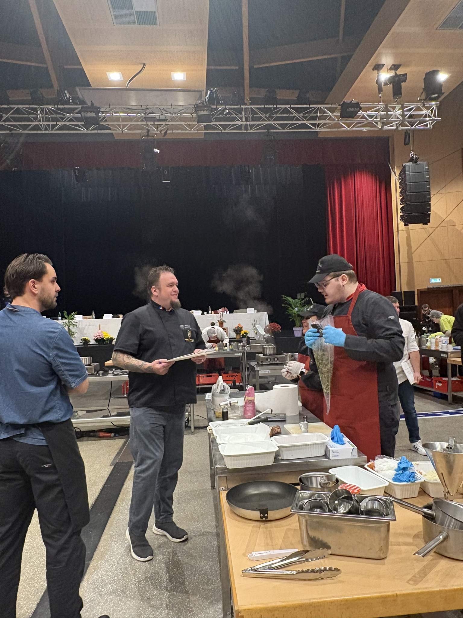 Le parrain de cette édition, Olivier Nasti (chef 2 étoiles du Chambard, à Kaysersberg), a parcouru les îlots tout au long de la journée, prodiguant ses conseils aux équipes avec une grande bienveillance.